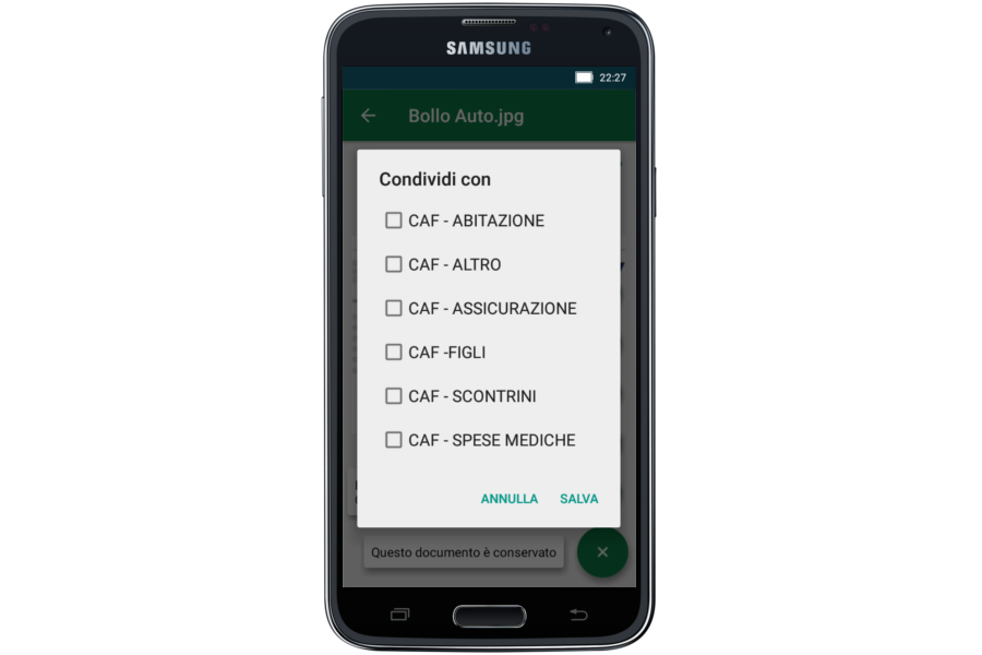 Per attivare la condivisione dei documenti da te raccolti grazie allo scatto telefonico o alle scansioni con il tuo PC, dovrai: aprire il menu facendo scorrere il dito da sinistra a destra, toccare dove c'è il tuo nome e spuntare la voce "Attiva condivisione". Dopo aver attivato il collegamento con lo sportello, comparirà un codice, invia quel codice al tuo operatore per concedergli l'accesso ai tuoi documenti etichettati CAF.